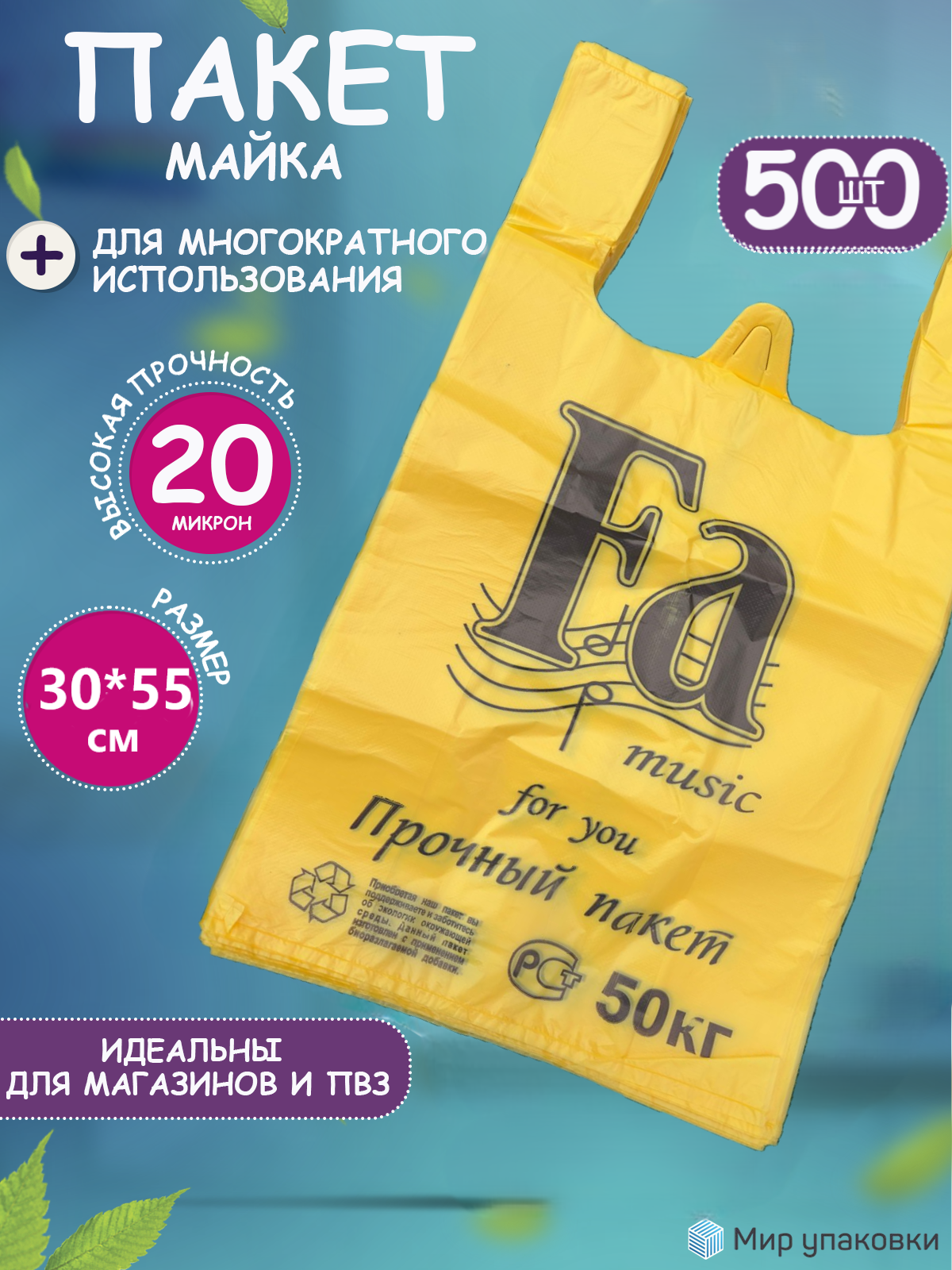 Купить Пакет майка FA 30*55см, цвет желтый, 500шт.