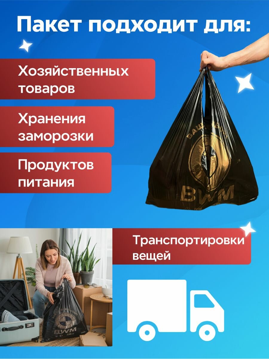 Фасовочные пакеты, Пакет майка, BWM, с усиленными ручками, полиэтиленовые, черные, 30 мкм, 50 шт интересное: