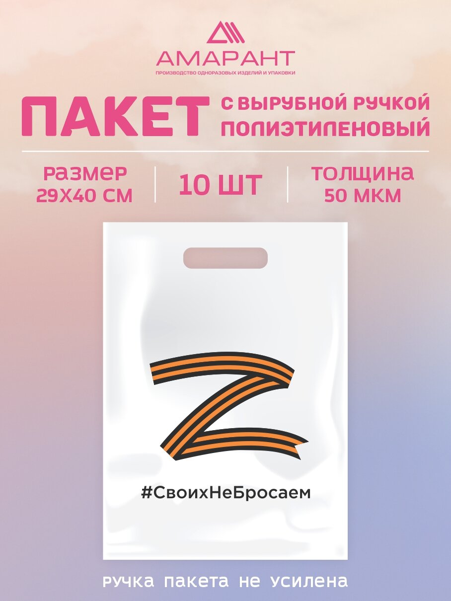СохранитьПакет Амарант "Своих не бросаем" с вырубной ручкой 29*40 см, 10 шт интересное: