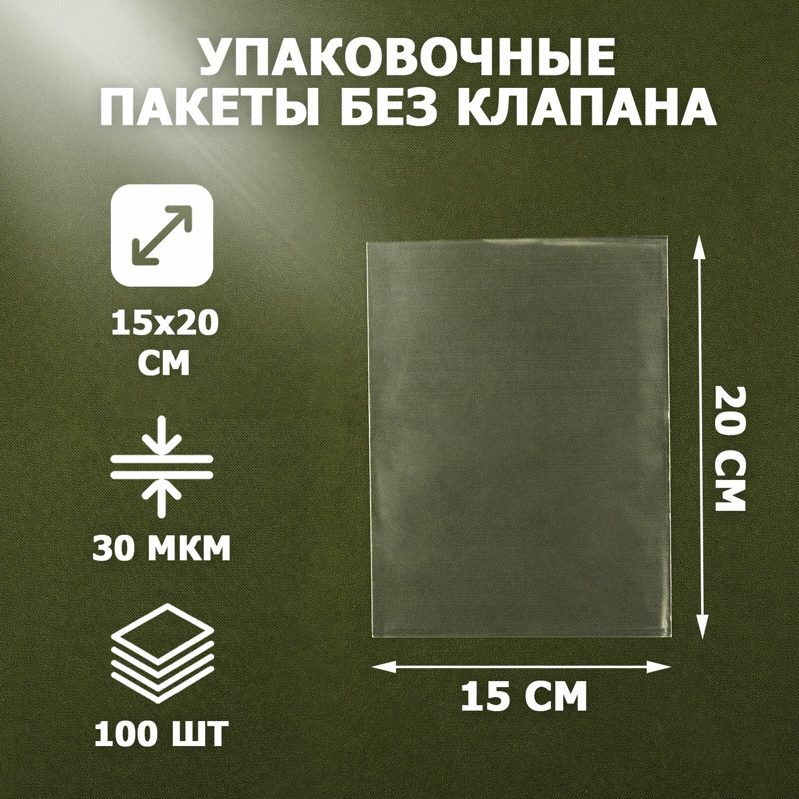 Пакеты упаковочные прозрачные 15х20 см, 100 шт, 30 мкм, без клеевого клапана, для упаковки и хранения интересное: