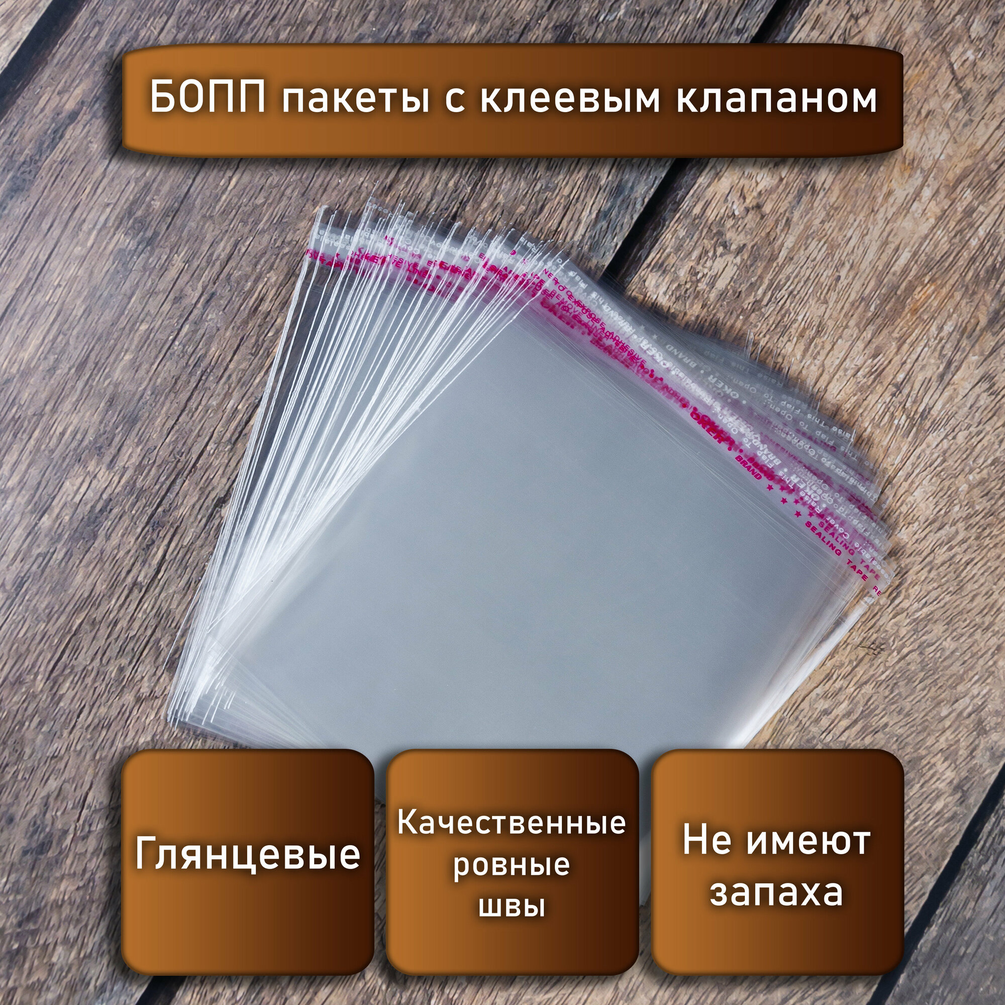 Купить Упаковочный Бопп пакет 11*11 см, 100 шт, с клеевым клапаном, прозрачный, многоразовые