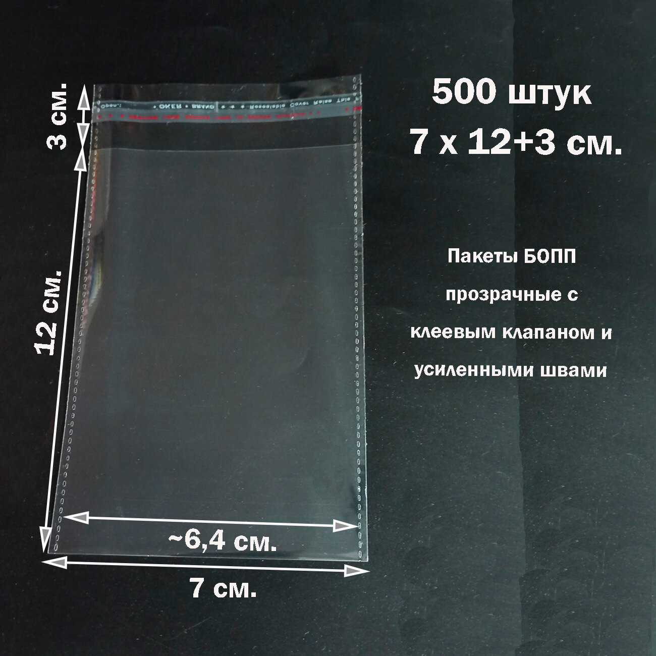 Купить 500 пакетов 7х12+3 см (внутр. размер 6,4х12 см) прозрачных упаковочных с клеевым клапаном и усиленными швами
