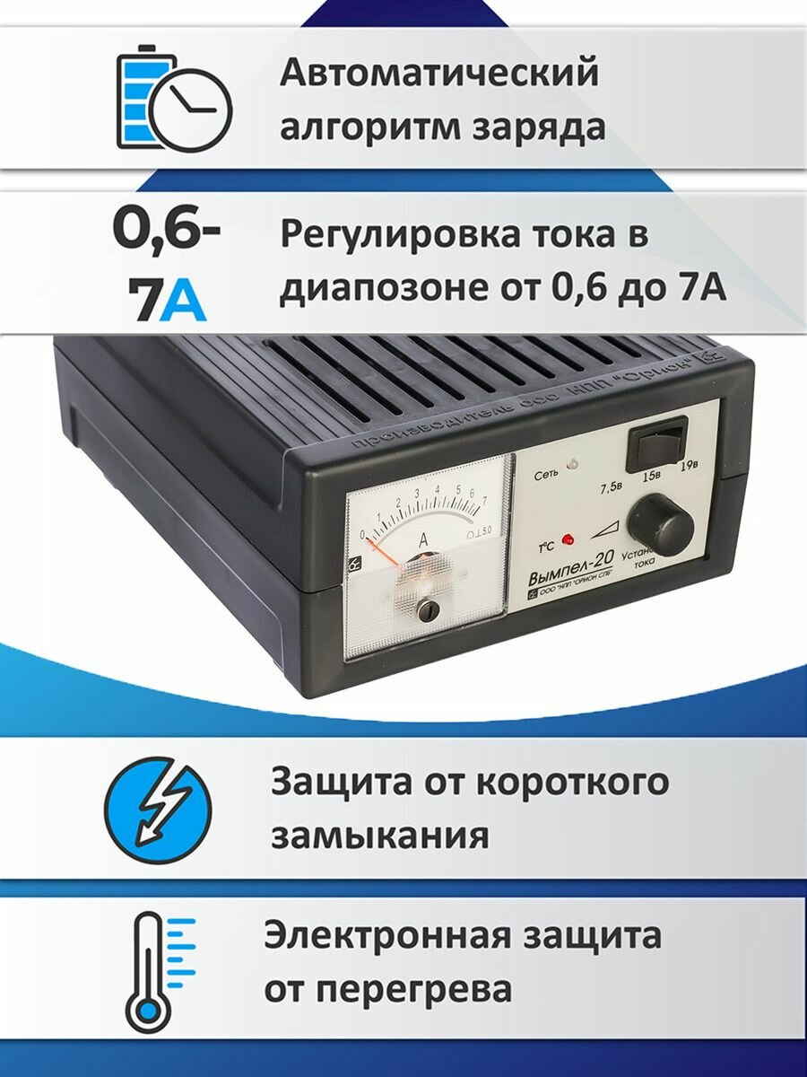 Купить Вымпел-20 (автомат, 0-7А, 6/12/19В) зарядное устройство
