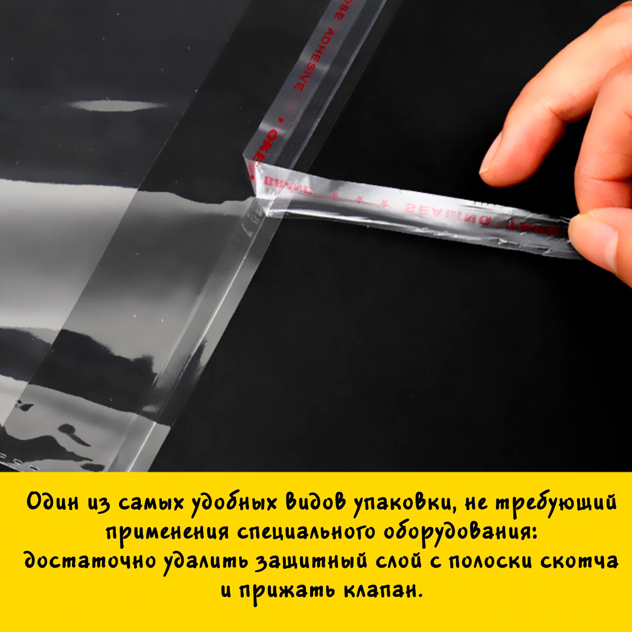 500 пакетов 14х23+3 см (внутр. размер 13,4х23 см) прозрачных упаковочных с клеевым клапаном и усиленными швами