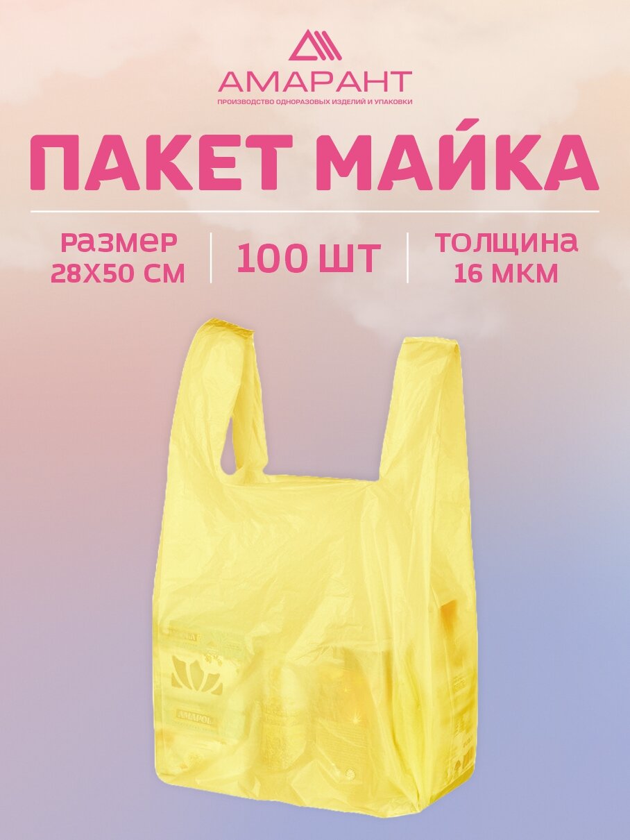 Пакет Майка "Амарант" желтая полиэтиленовая " 28 x 50 см 100 шт интересное: