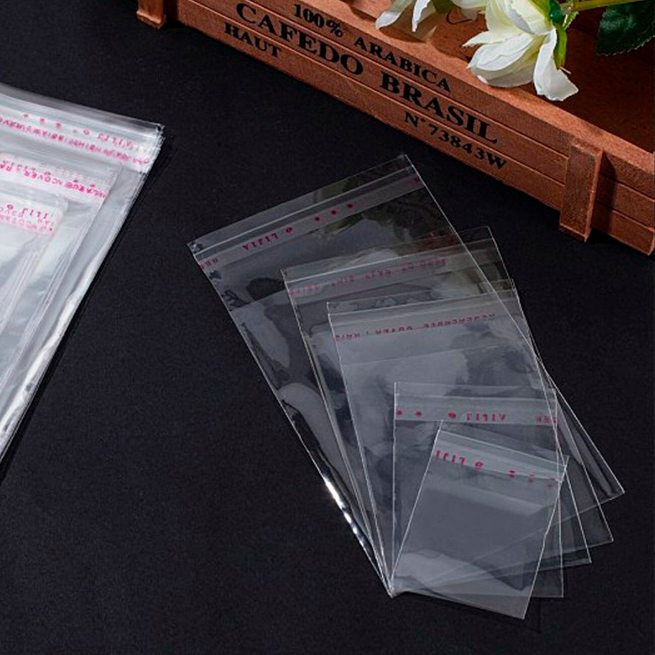 500 пакетов 4х7.5+2 см с клеевым краем упаковочные из прозрачной пленки бопп