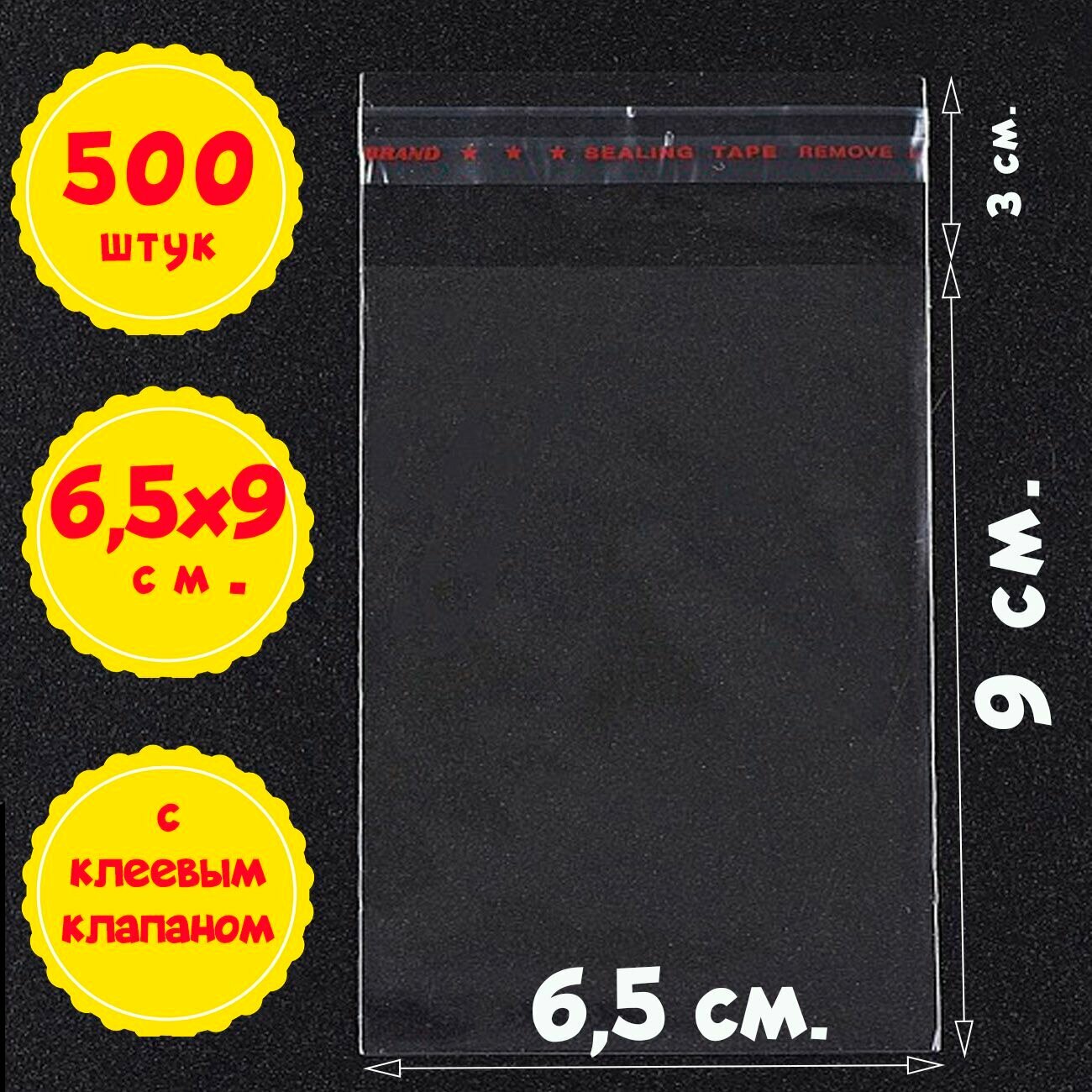 Купить 500 пакетов 6,5х9+3 см с клеевым клапаном прозрачные упаковочные из пленки бопп