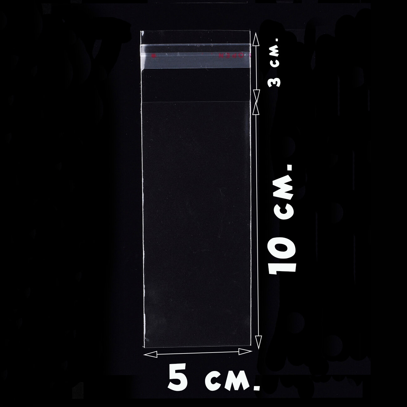 500 пакетов 5х10+3 см. прозрачных с клеевым клапаном для упаковки из пленки бопп