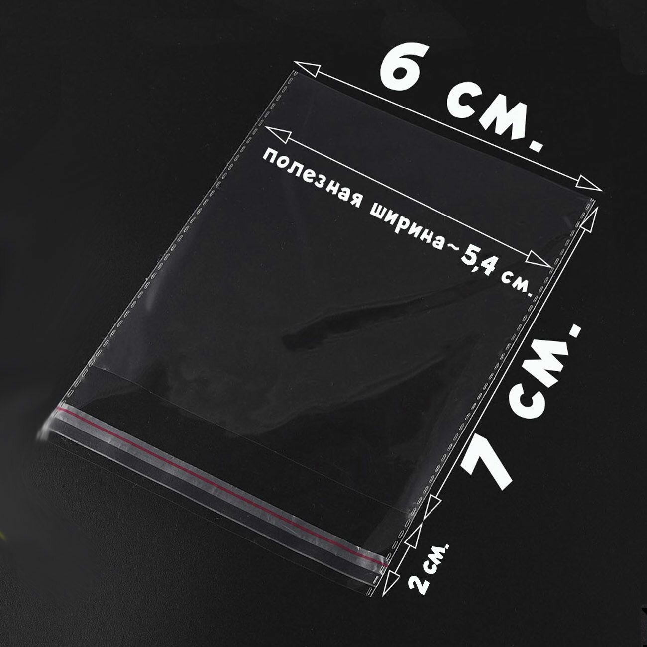 Купить 1000 пакетов 6х7+2 см (внутр. размеры 5.4х7 см.) с клеевым клапаном упаковочных бопп, усиленные швы