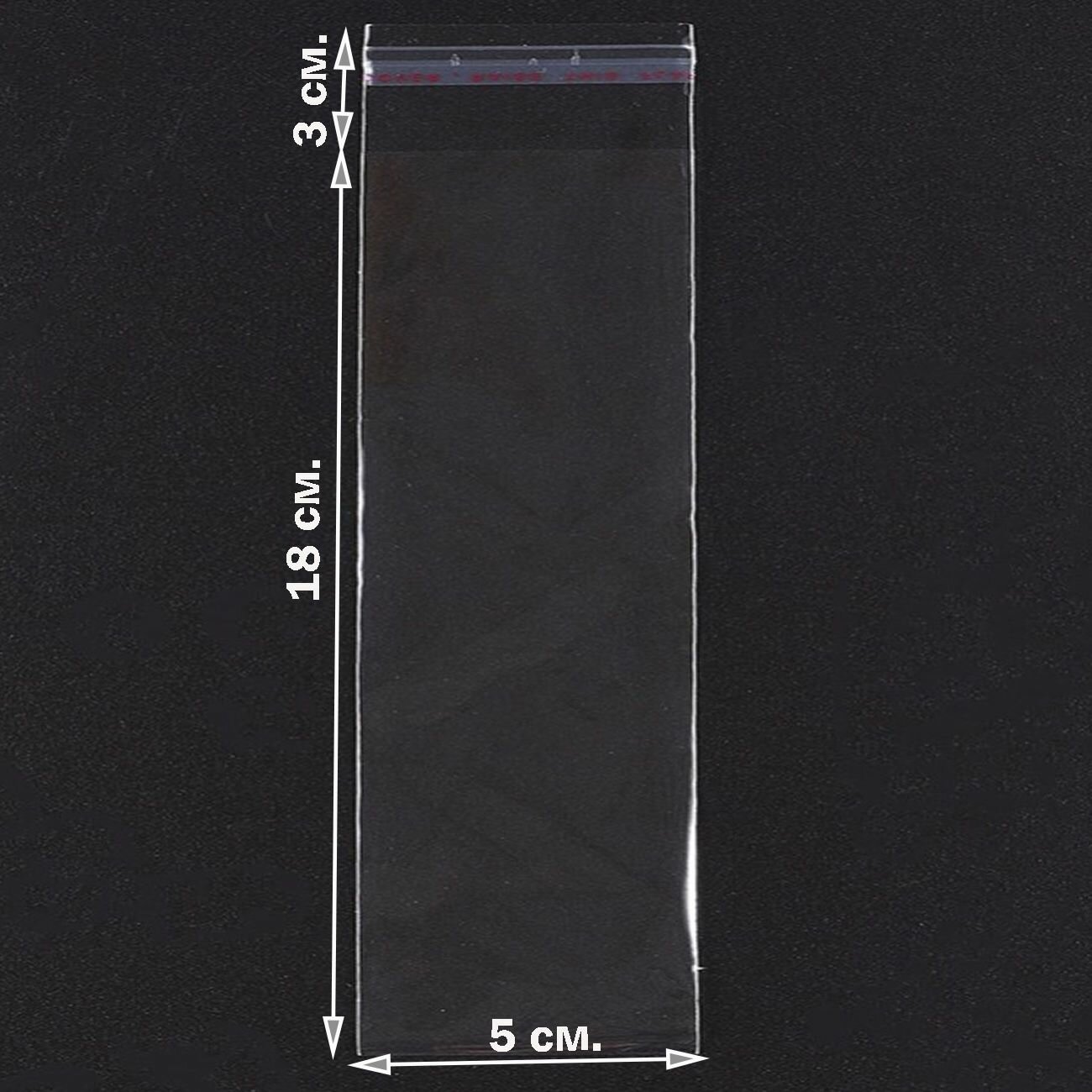 500 пакетов 6х23+3 см (внутр. размеры 5.4х23 см.) с клеевым клапаном упаковочные прозрачные бопп усиленные швы