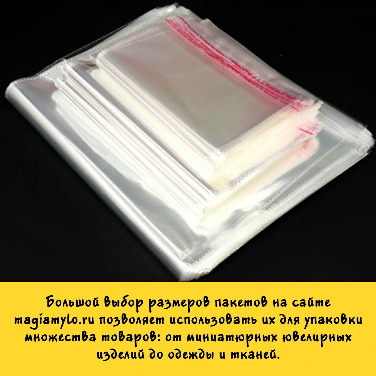 500 пакетов 4х7.5+2 см с клеевым краем упаковочные из прозрачной пленки бопп