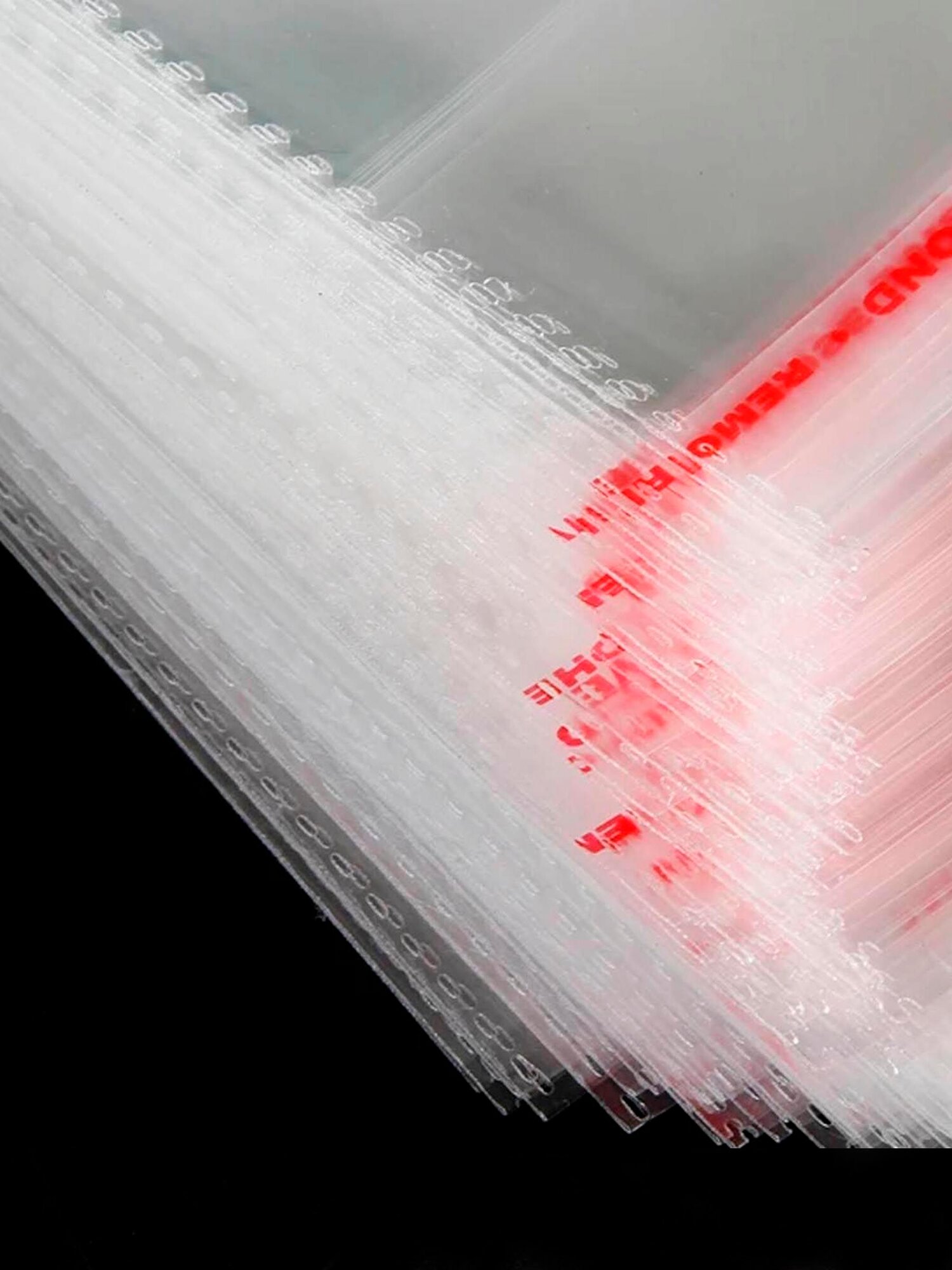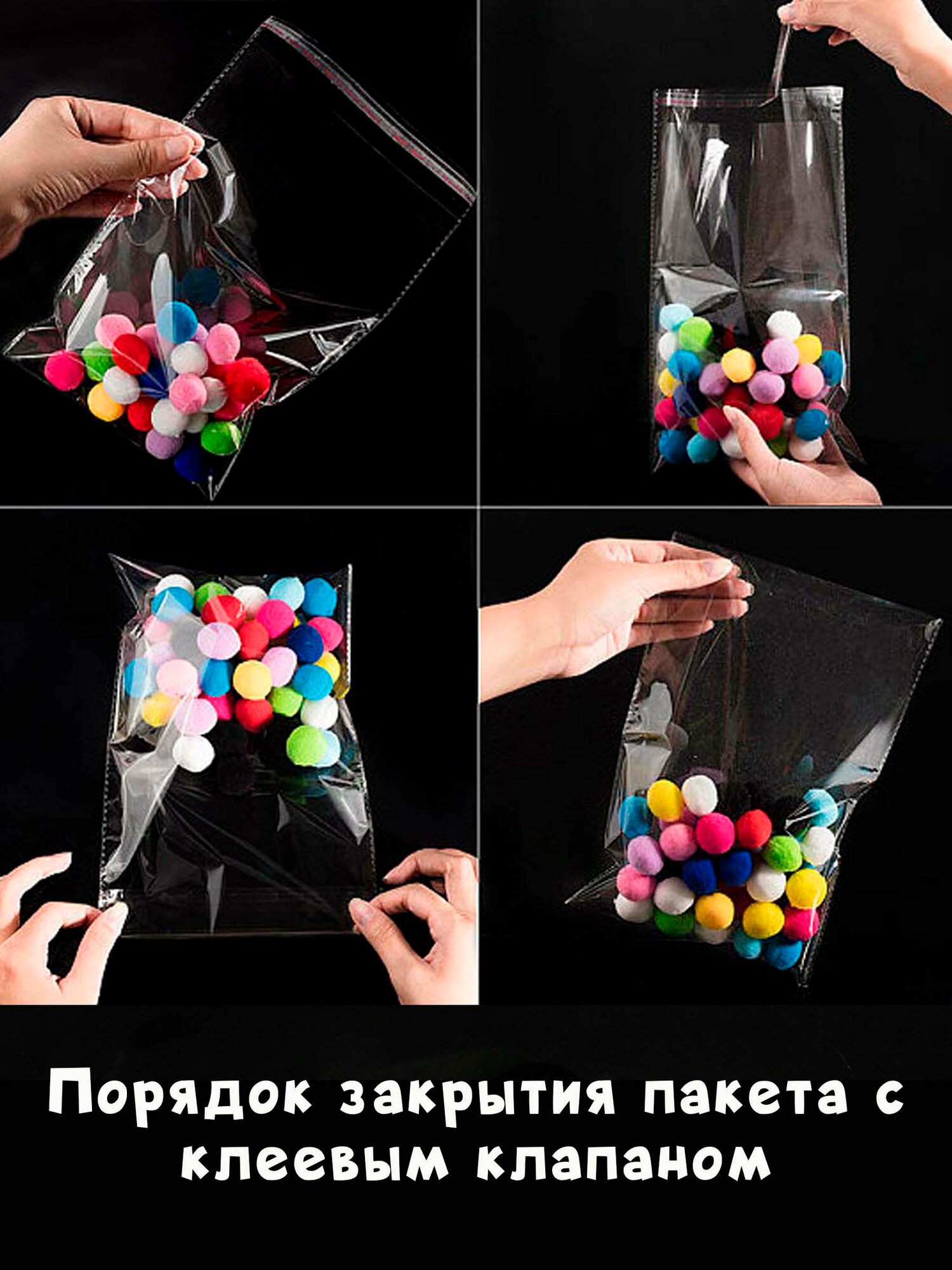500 пакетов 4х7.5+2 см с клеевым краем упаковочные из прозрачной пленки бопп