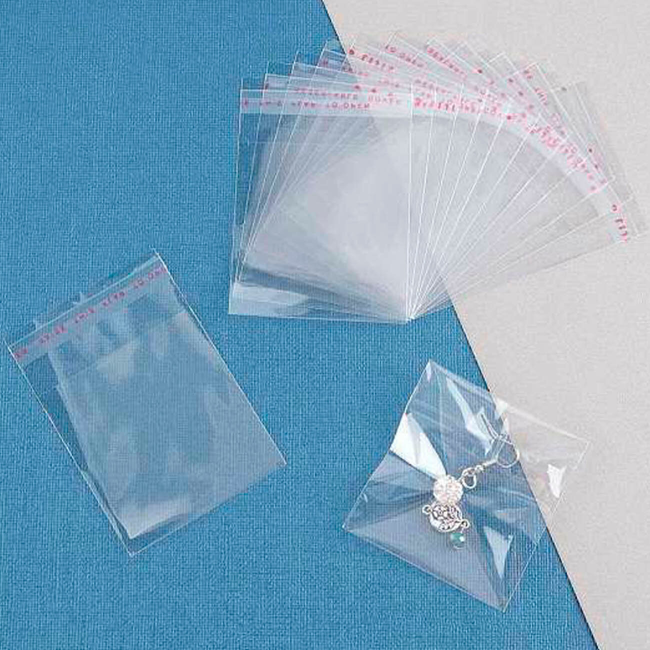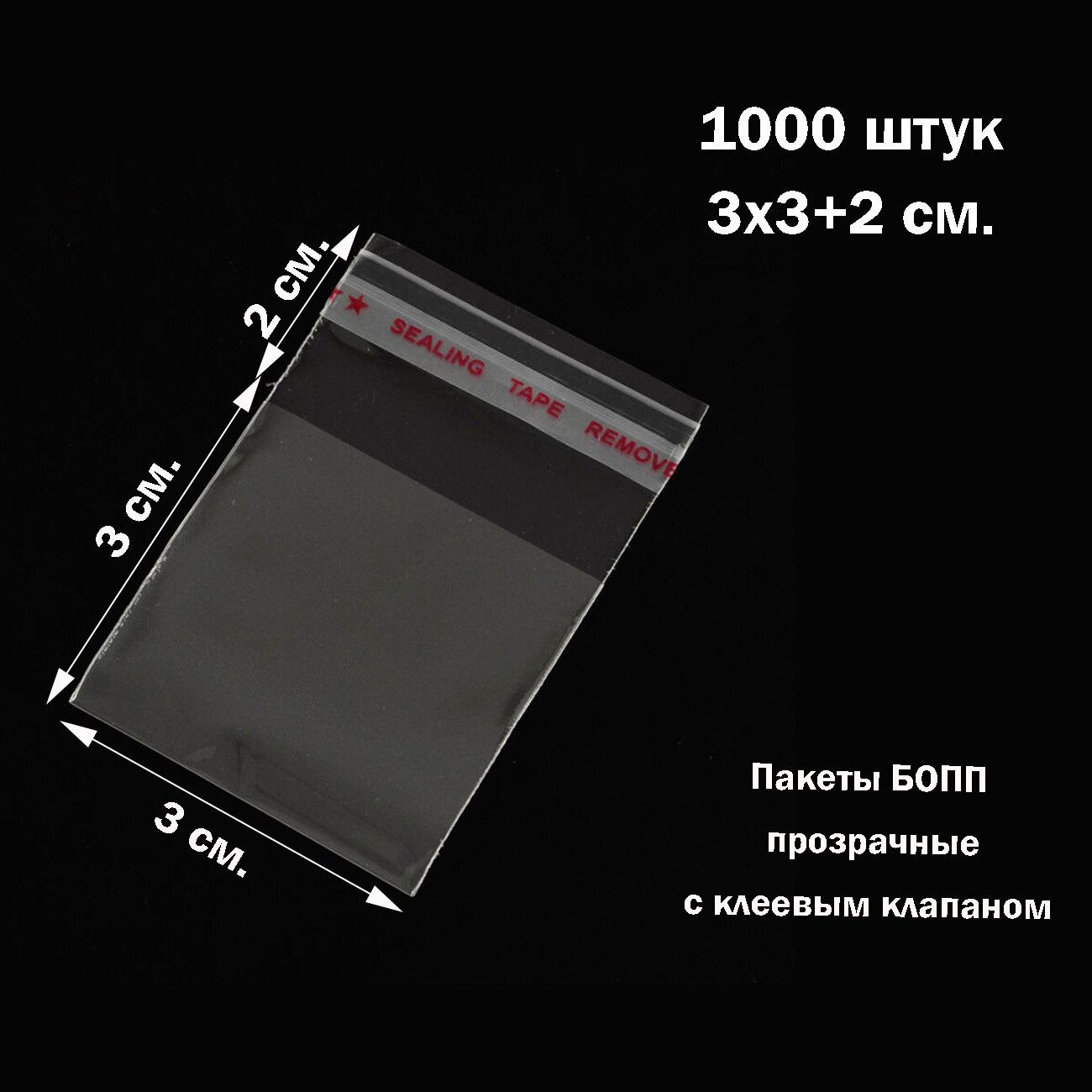 Купить 1000 пакетиков 3х3+2 см с липким краем прозрачные упаковочные из пленки бопп