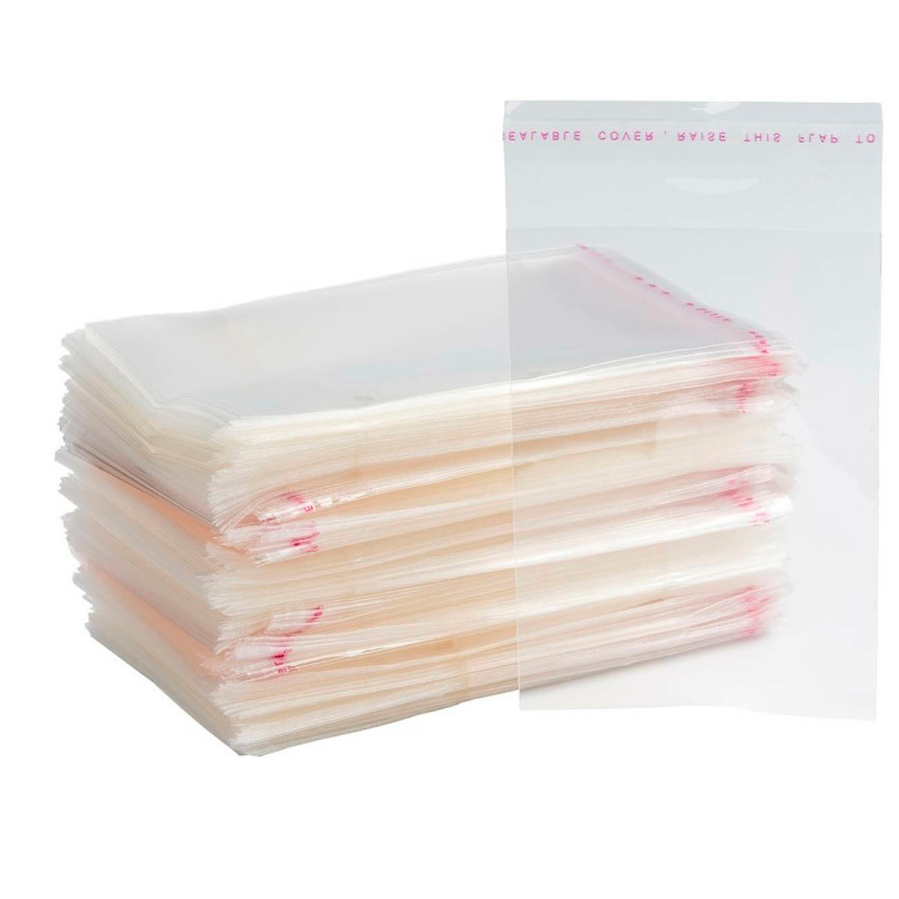 1000 пакетов 6х12+3 см с липким краем прозрачные упаковочные из пленки бопп