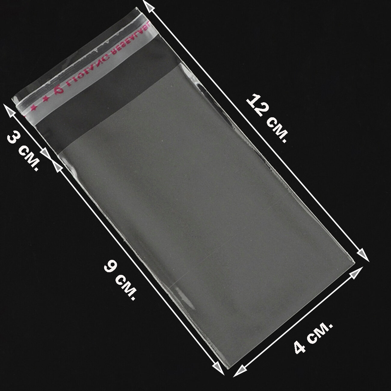 1000 пакетов 4х9+2 см с клеевым клапаном упаковочные из прозрачной пленки бопп