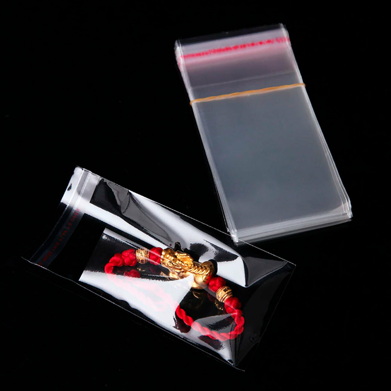 1000 пакетиков 5х8+2 см с липким краем прозрачные упаковочные из пленки бопп