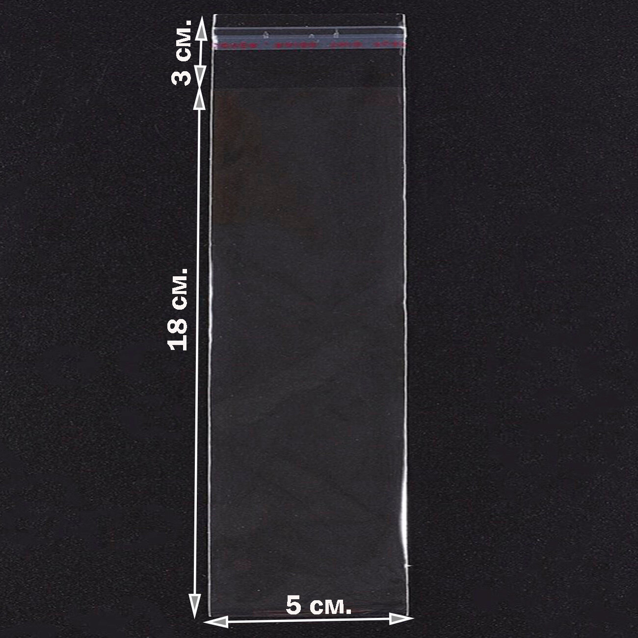 Купить 500 пакетов 5х18+3 см прозрачных с клеевым клапаном для упаковки из пленки бопп