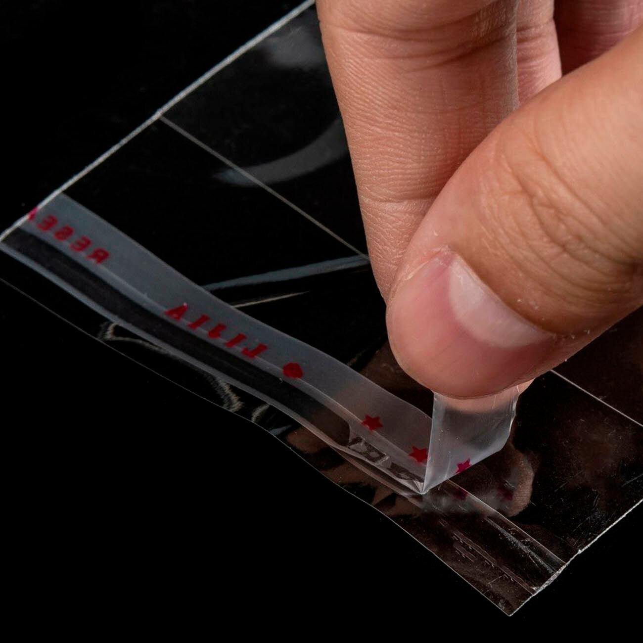 1000 пакетиков 4х4+2 см с липким краем прозрачные упаковочные из пленки бопп