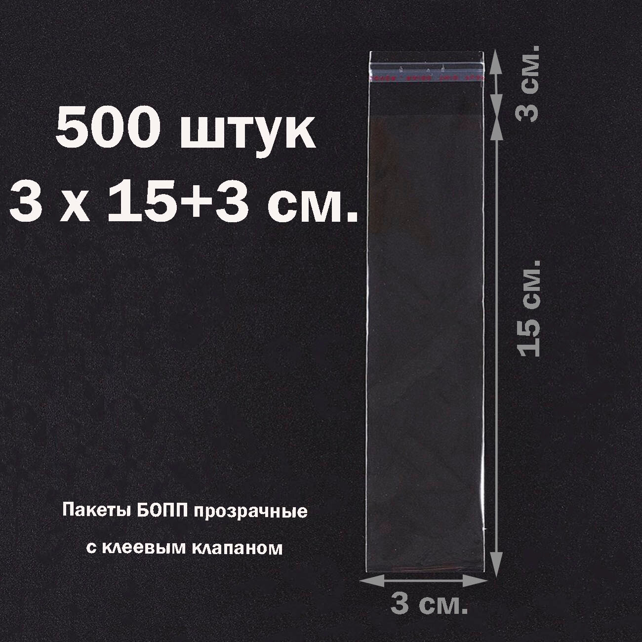 500 пакетов 3х18+3 см прозрачных с клеевым клапаном для упаковки из пленки бопп
