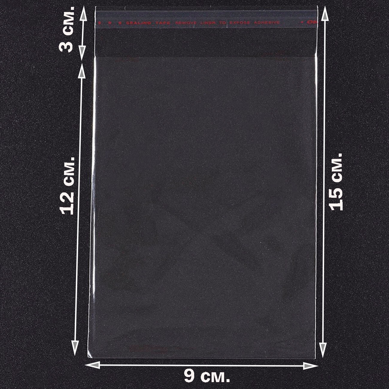 500 пакетов 12х15+3 см прозрачных с клеевым клапаном для упаковки из пленки бопп