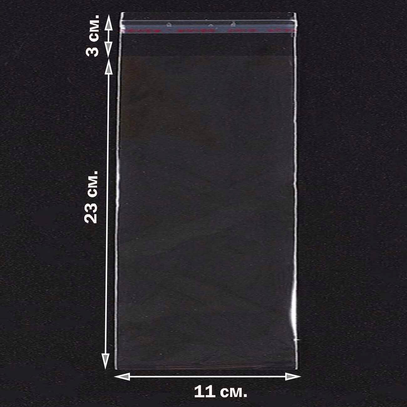 Купить 500 пакетов 11х23+3 см прозрачных с клеевым клапаном для упаковки из пленки бопп