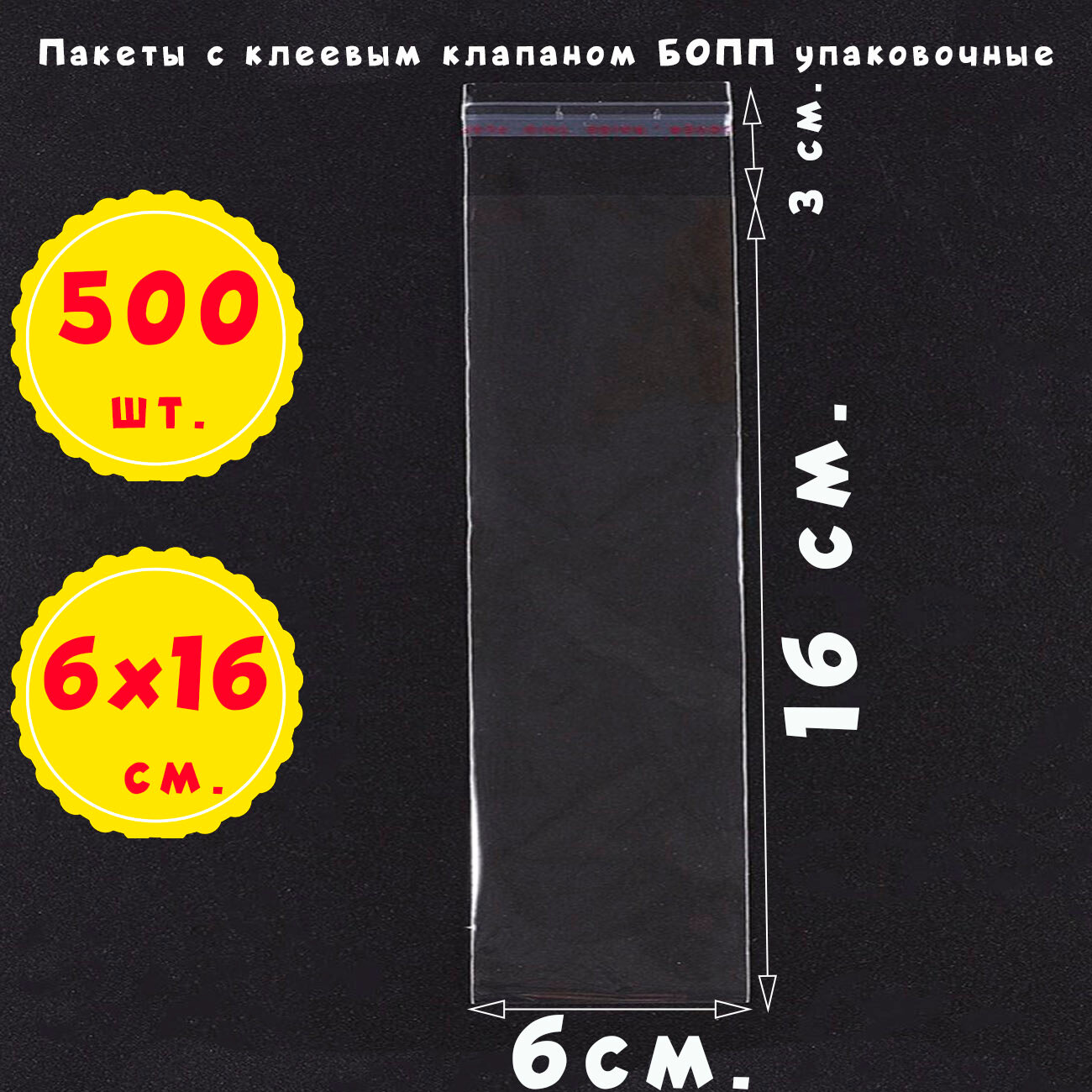 Купить 500 пакетов 6х16+3 см прозрачных с клеевым клапаном для упаковки из пленки бопп