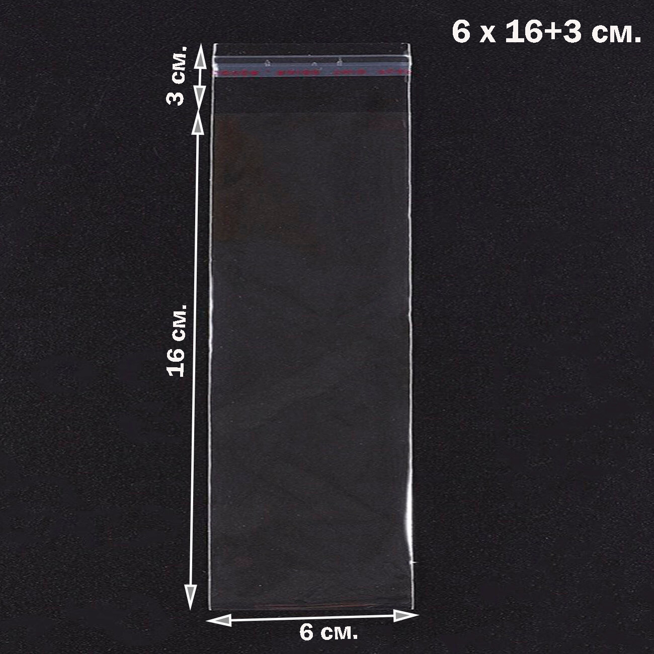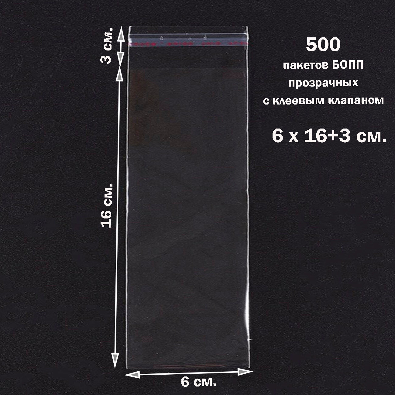 500 пакетов 6х21+3 см прозрачных с клеевым клапаном для упаковки из пленки бопп