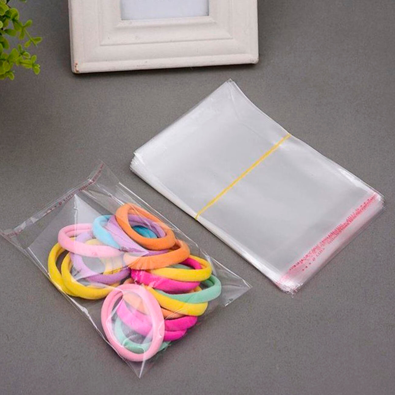 1000 пакетов 6х6+2 см с липким краем прозрачные упаковочные из пленки бопп