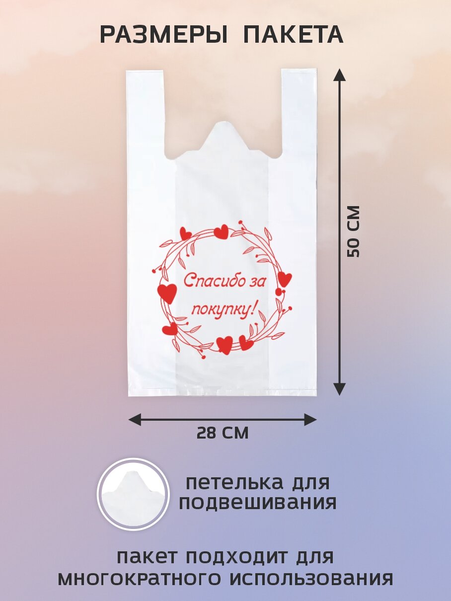 Пакет Майка "Амарант" полиэтиленовый "Спасибо за покупку" 28 x 50 см 100 шт