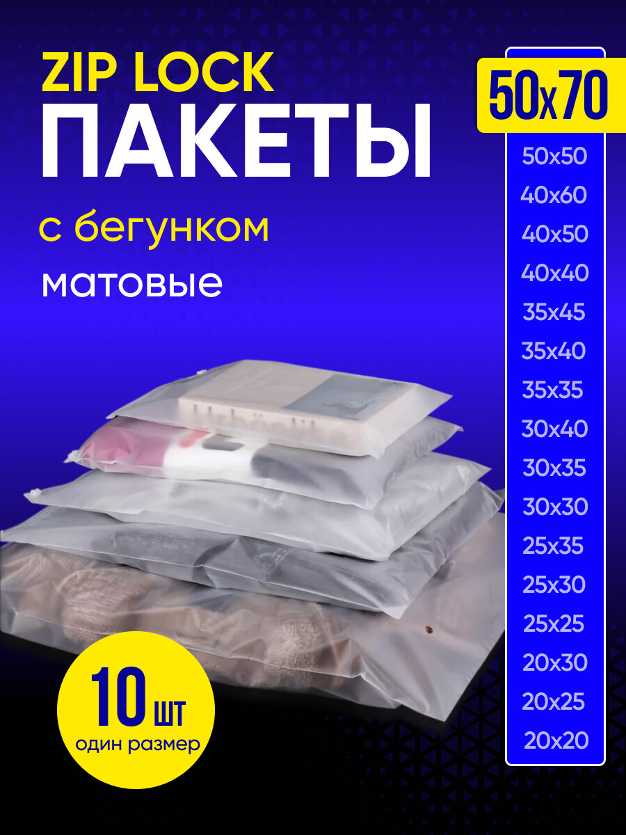 Упаковочный пакет с Зип лок бегунком, 50х70 см, 50 шт, матовые, 120 мкм