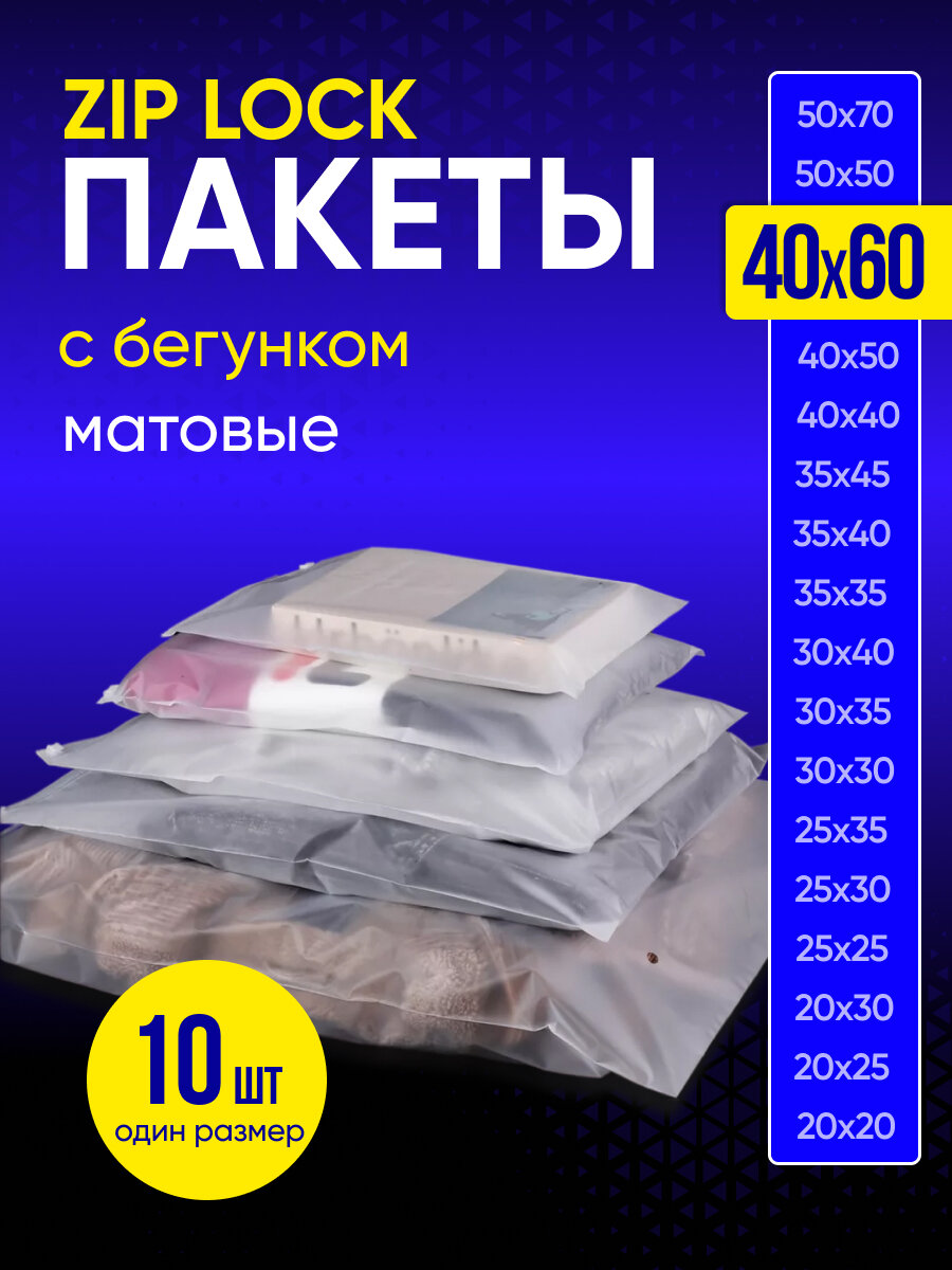 Упаковочный пакет с Зип лок бегунком, 40х60 см, 50 шт, матовые, 120 мкм