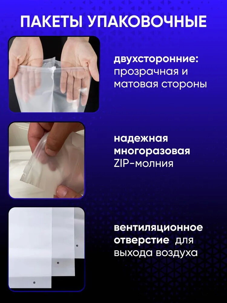 Упаковочный пакет с Зип лок бегунком, 50х70 см, 100 шт, матовые, 120 мкм