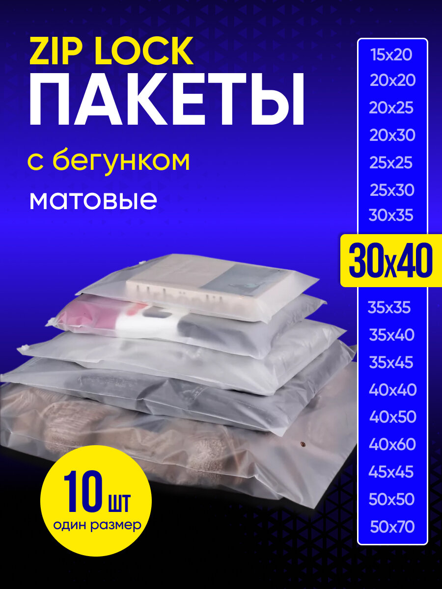 Упаковочный пакет с Зип лок бегунком, 40х60 см, 50 шт, матовые, 120 мкм