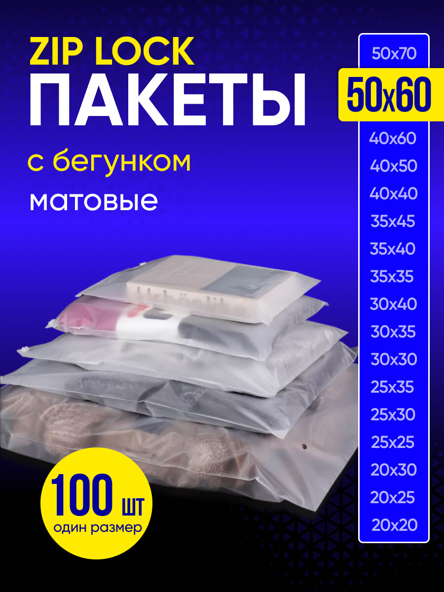 Упаковочный пакет с Зип лок бегунком, 50х70 см, 100 шт, матовые, 120 мкм