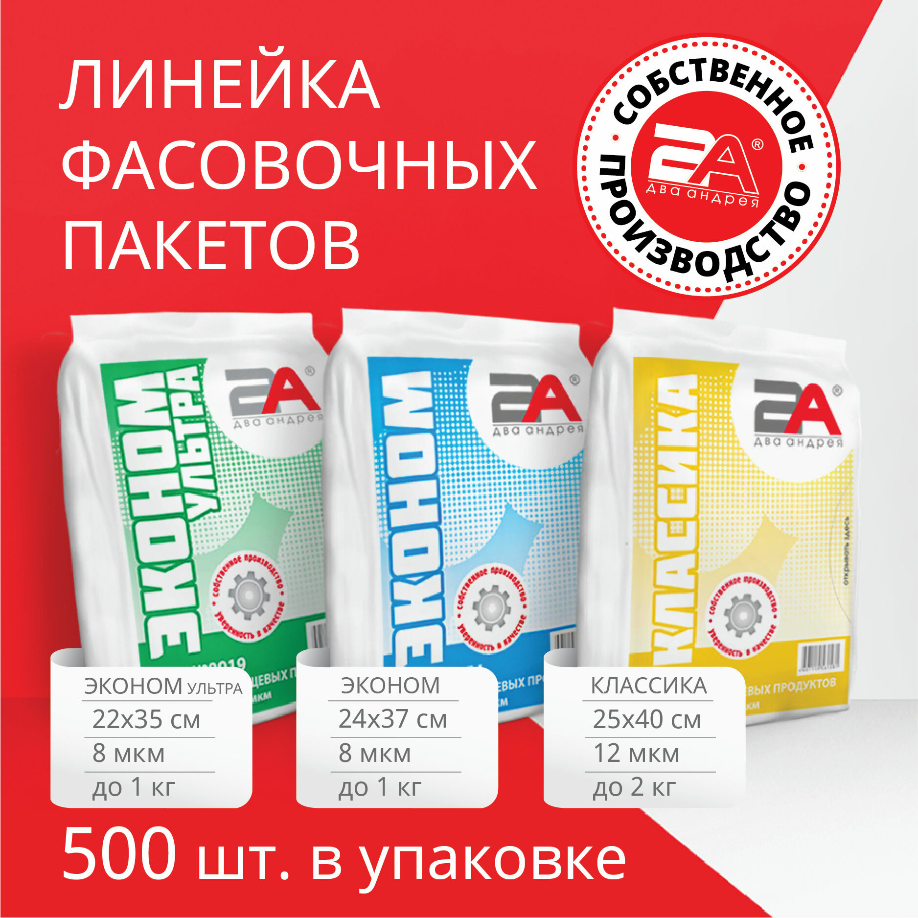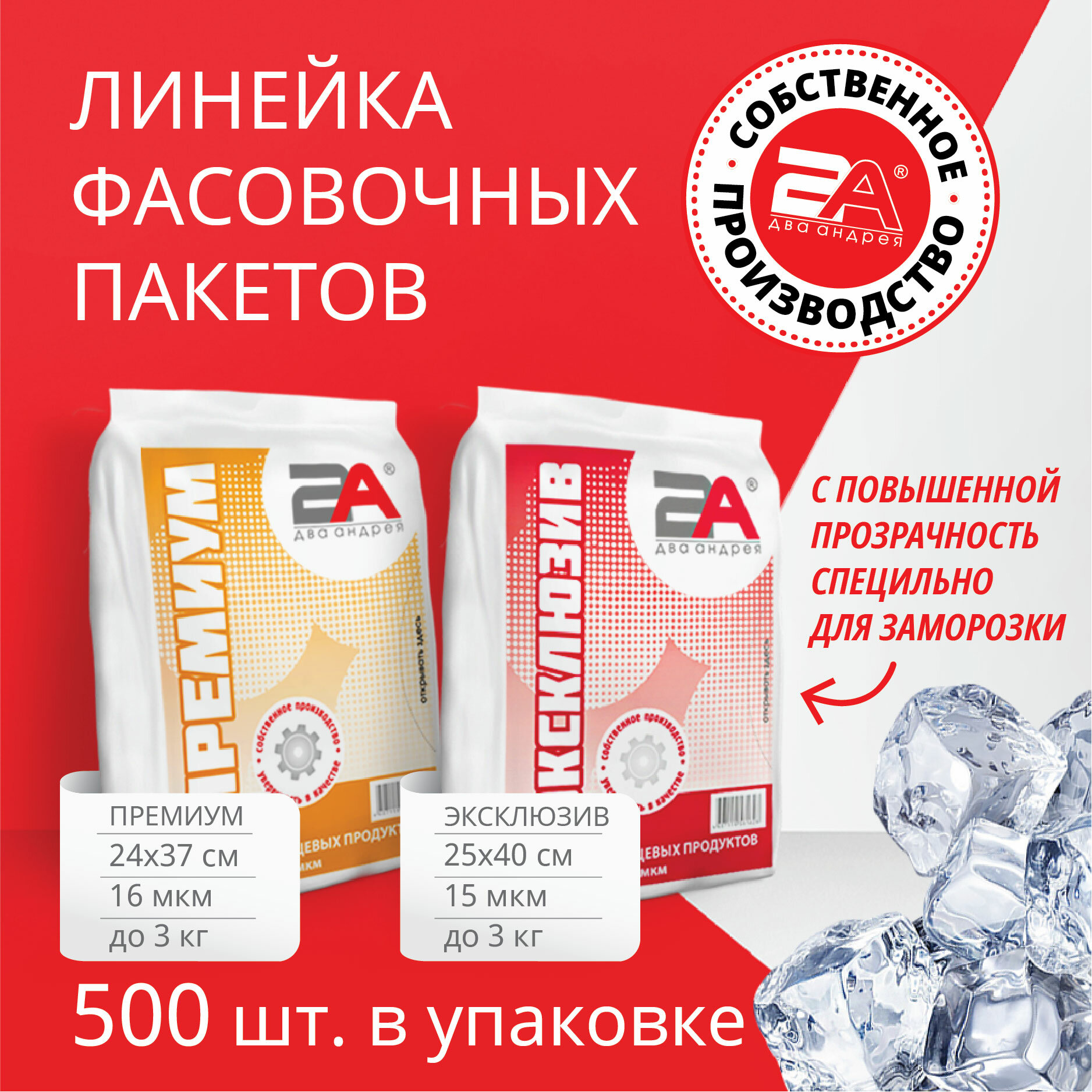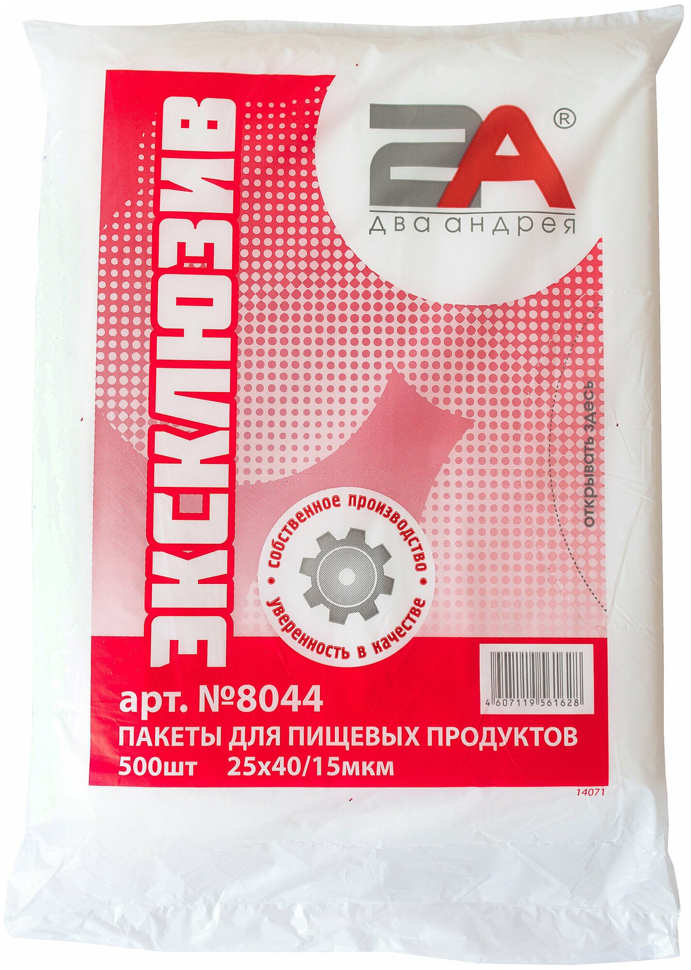 Купить Фасовочные пакеты Два Андрея "Эксклюзив", полиэтилен, 25см x 40см, 15мкм, 500 штук