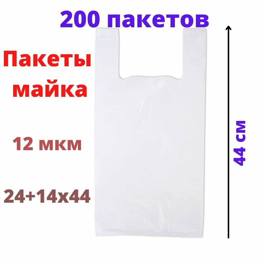Купить Пакеты майка 200 штук 24+14 (боковая складка) х44 см белая 12 мкм