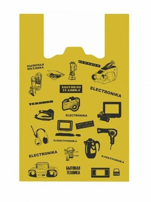 СохранитьПакеты майка 100 штук 42+20(боковая складка) х 65 см "Электроника" цветные 17 мкм интересное: