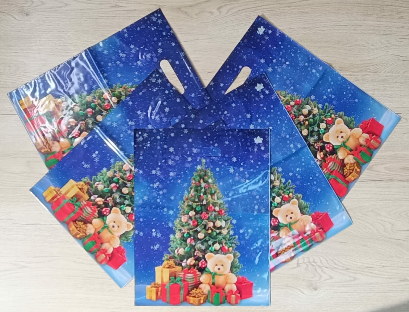 Купить Набор пакетов полиэтиленовых "Новогодняя елка" с вырубной ручкой, 60 мкм, 30 х 40 см (+/- 0,5 см), донная складка см, 5 шт