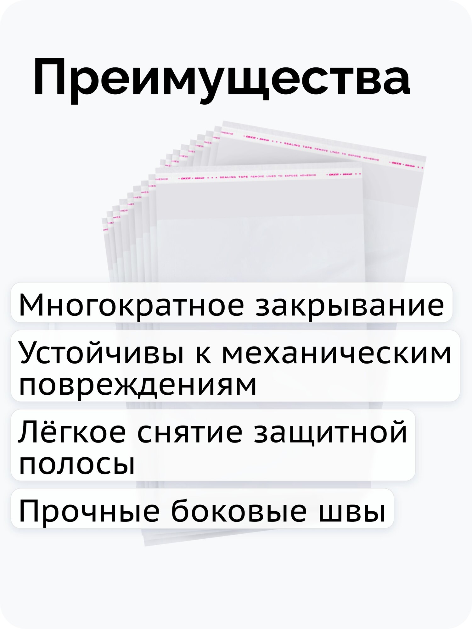 Упаковочные БОПП пакеты с клеевым клапаном, 28*41 см, 100 шт