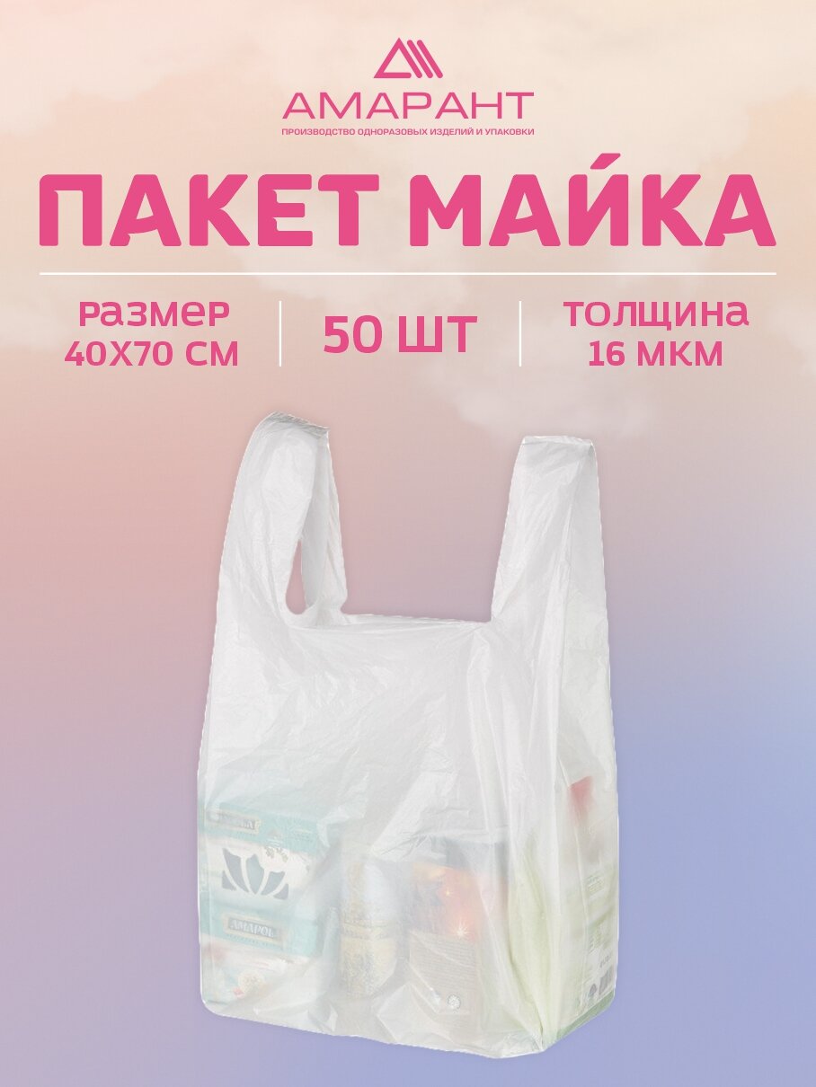 Купить Пакет Майка Амарант полиэтиленовый 40х70 см 50 шт, белый