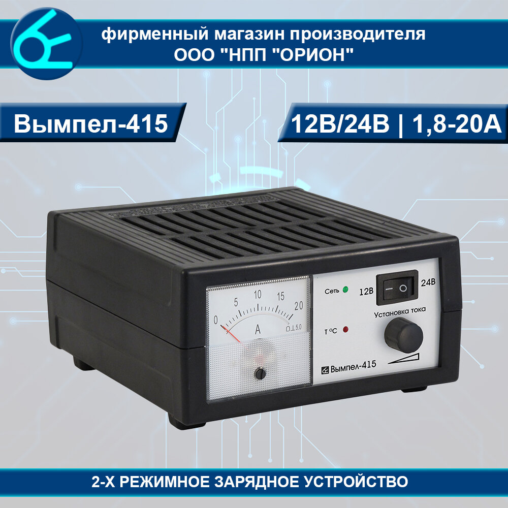 Зарядное Устройство "Вымпел-415" Напряжение 12/24 В, Ток 0,4-20 А, Стрелочный Индикатор ORION арт. 2024