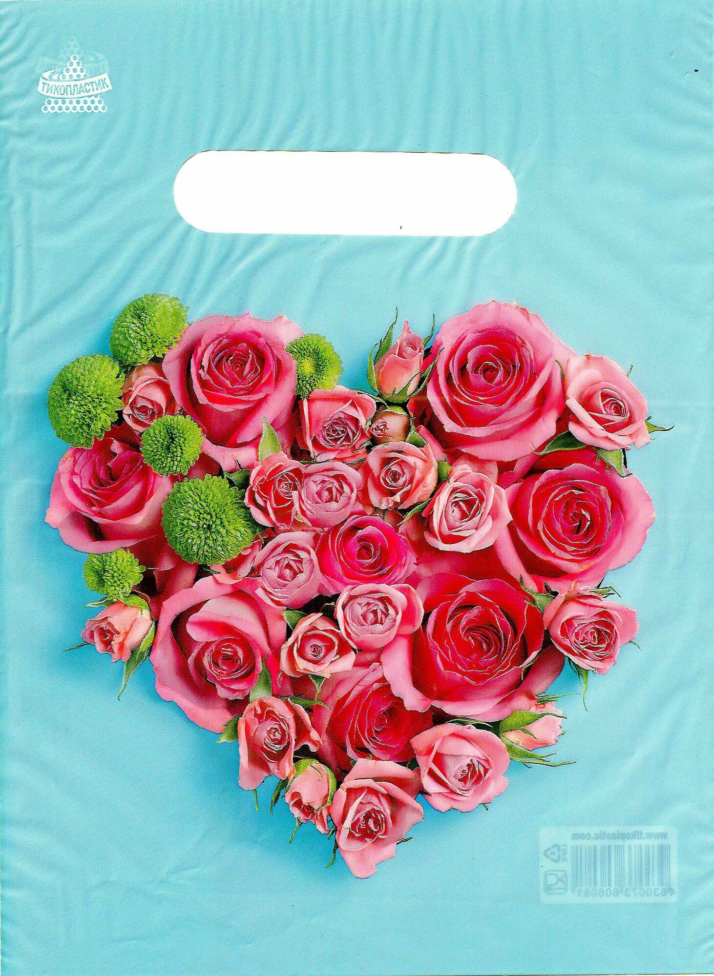 Купить Пакет "Розочки в сердце", полиэтиленовый, с вырубной ручкой, 19 х 25 см, 30 мкм./10шт.