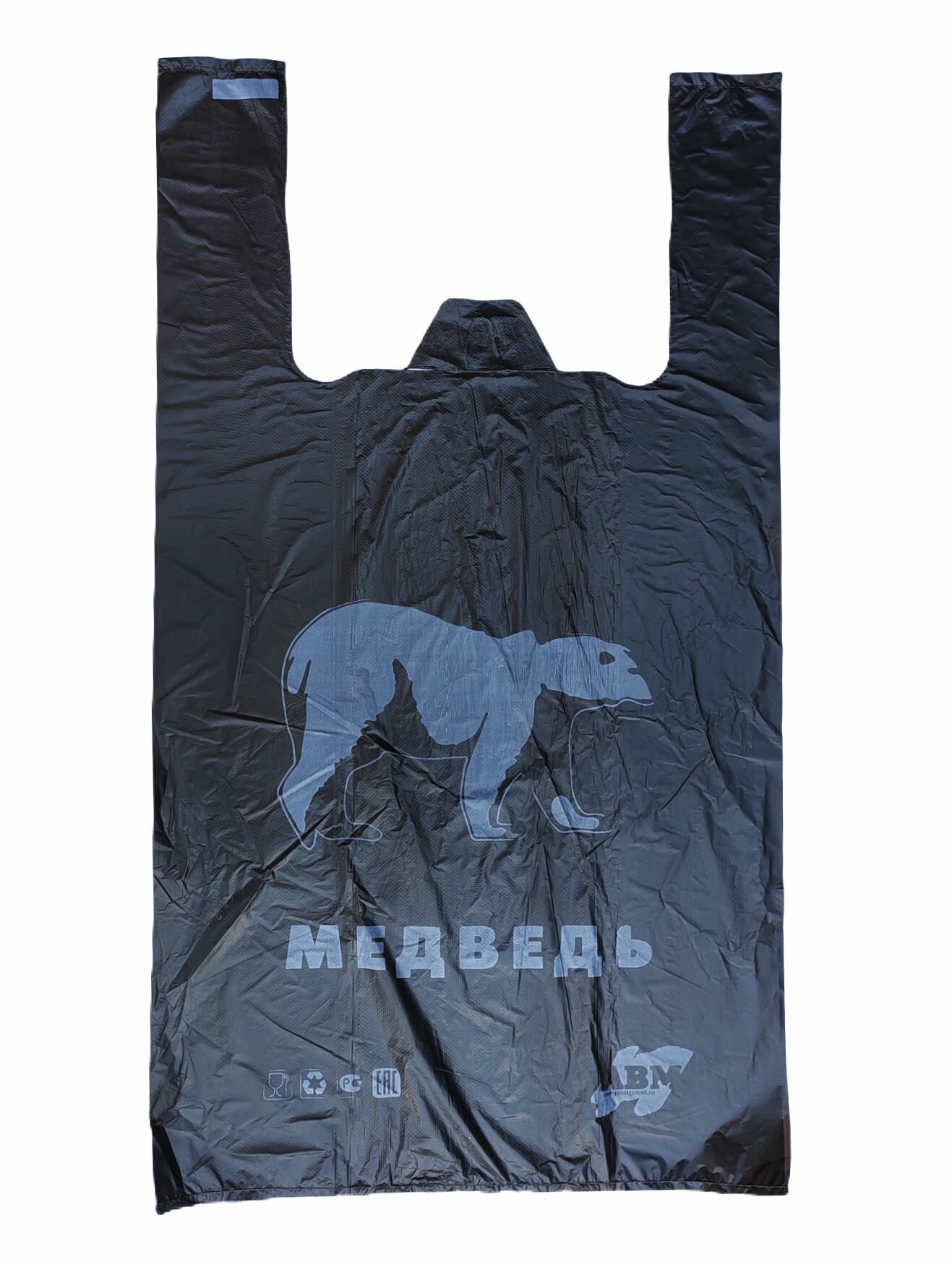 Купить Пакет-майка "Медведь" 200 шт чёрная с печатью 33(2*8)*59