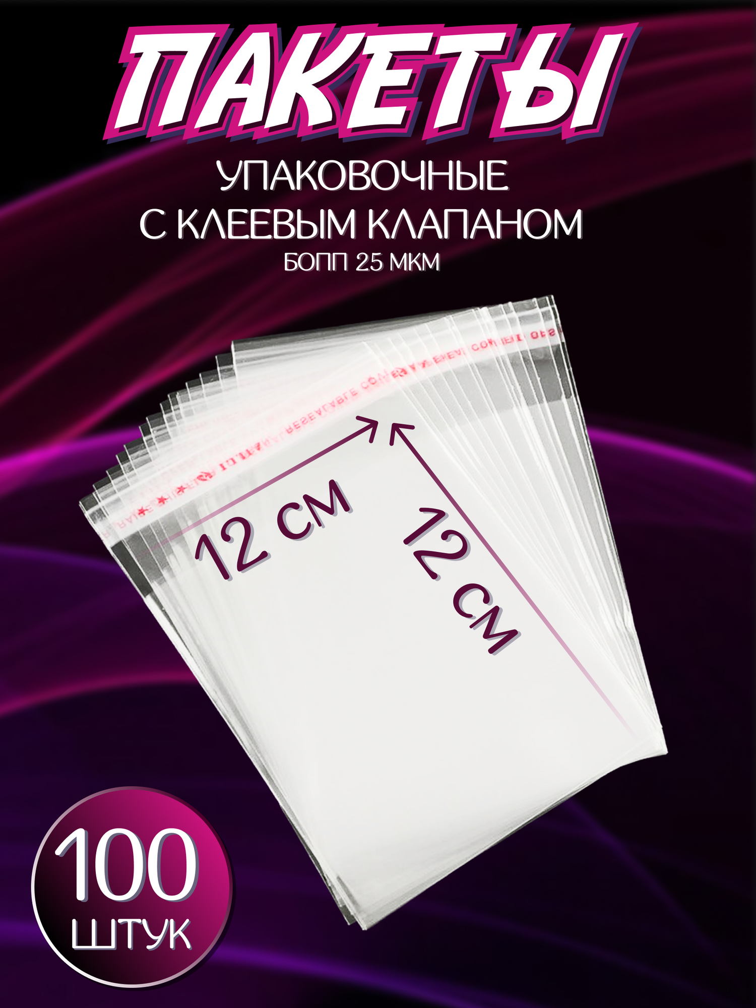 Упаковочные пакеты, с клеевым клапаном, БОПП, 12х12см, 100 штук интересное: