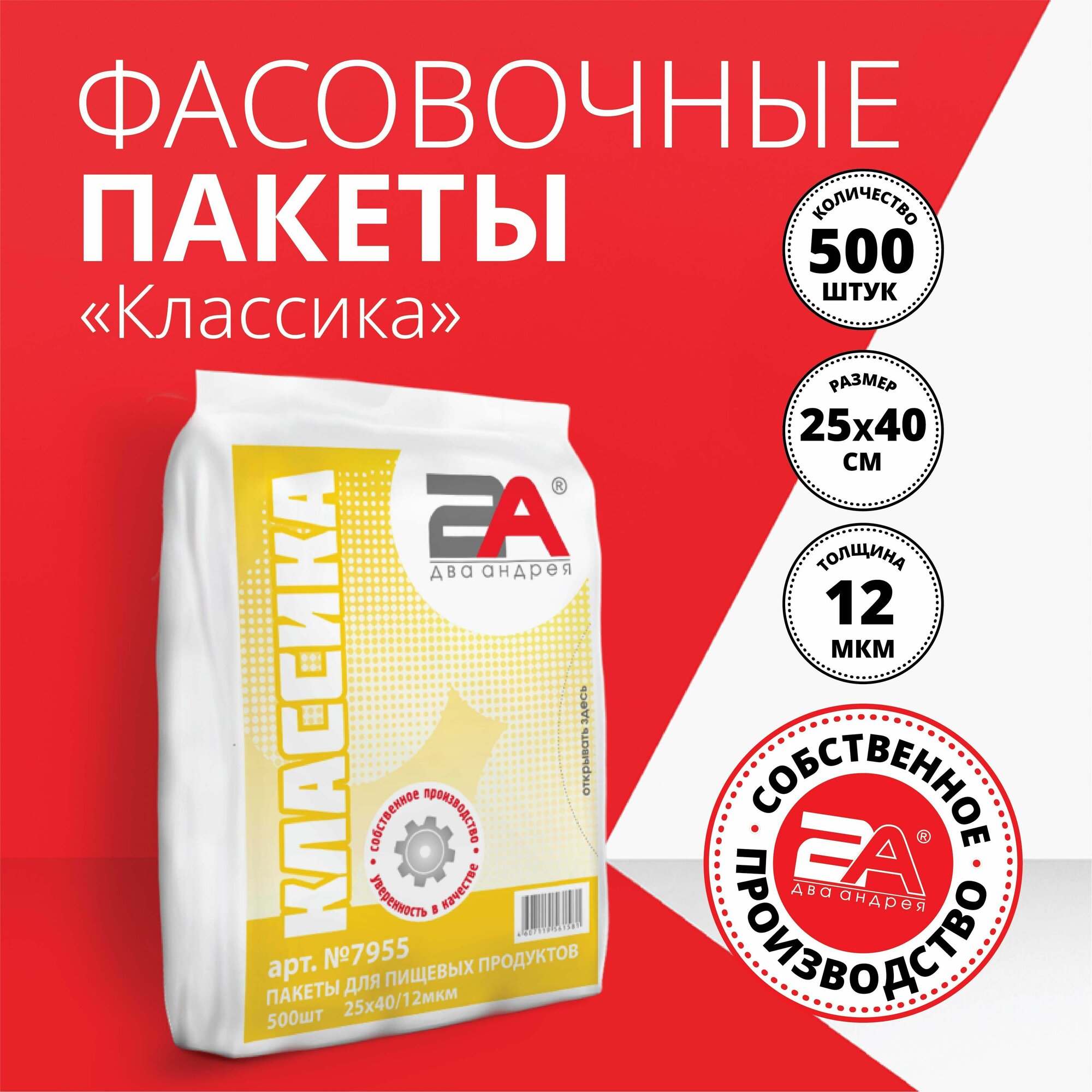 Купить Фасовочные пакеты Два Андрея "Классика", полиэтилен, 25см x 40см, 12мкм, 500 штук