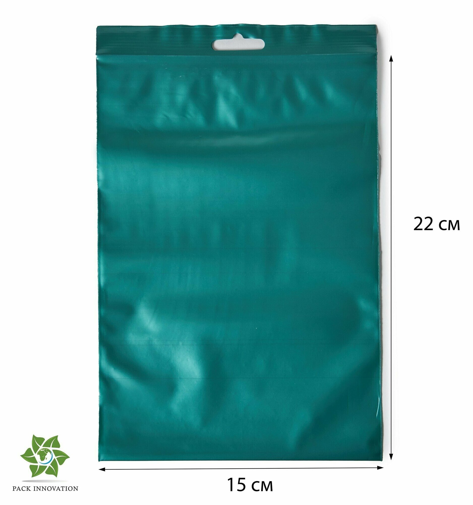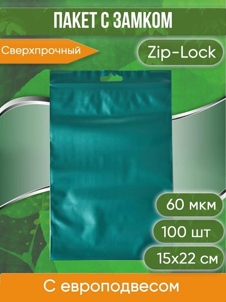 Пакет с замком Zip-Lock (Зип лок), 15х22 см, 60 мкм, с европодвесом, сверхпрочный, зеленый металлик, 100 шт. интересное: