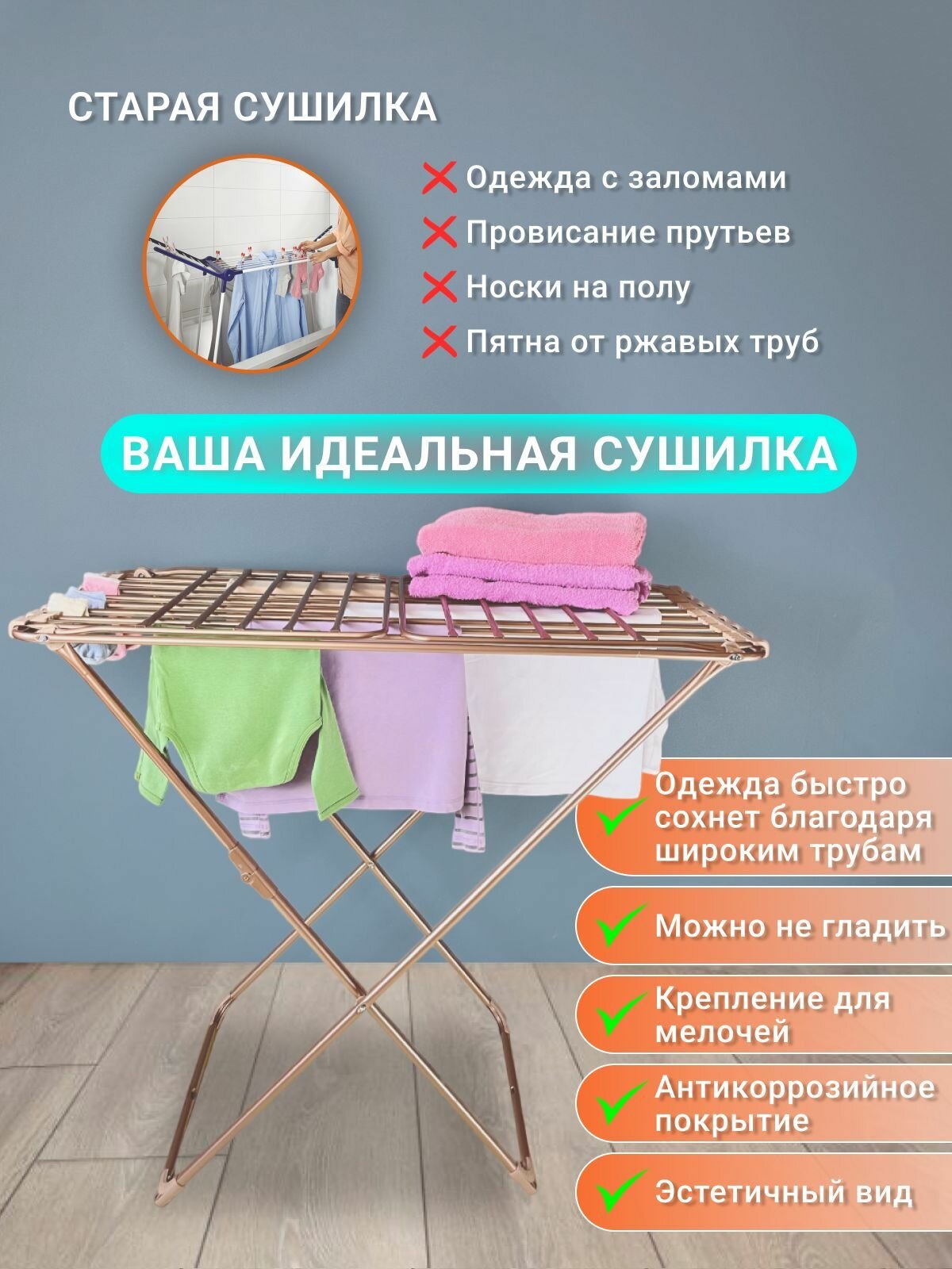 Сушилка для белья напольная Ника с широкими трубами и держателем для мелких вещей СБТ18Роз интересное: