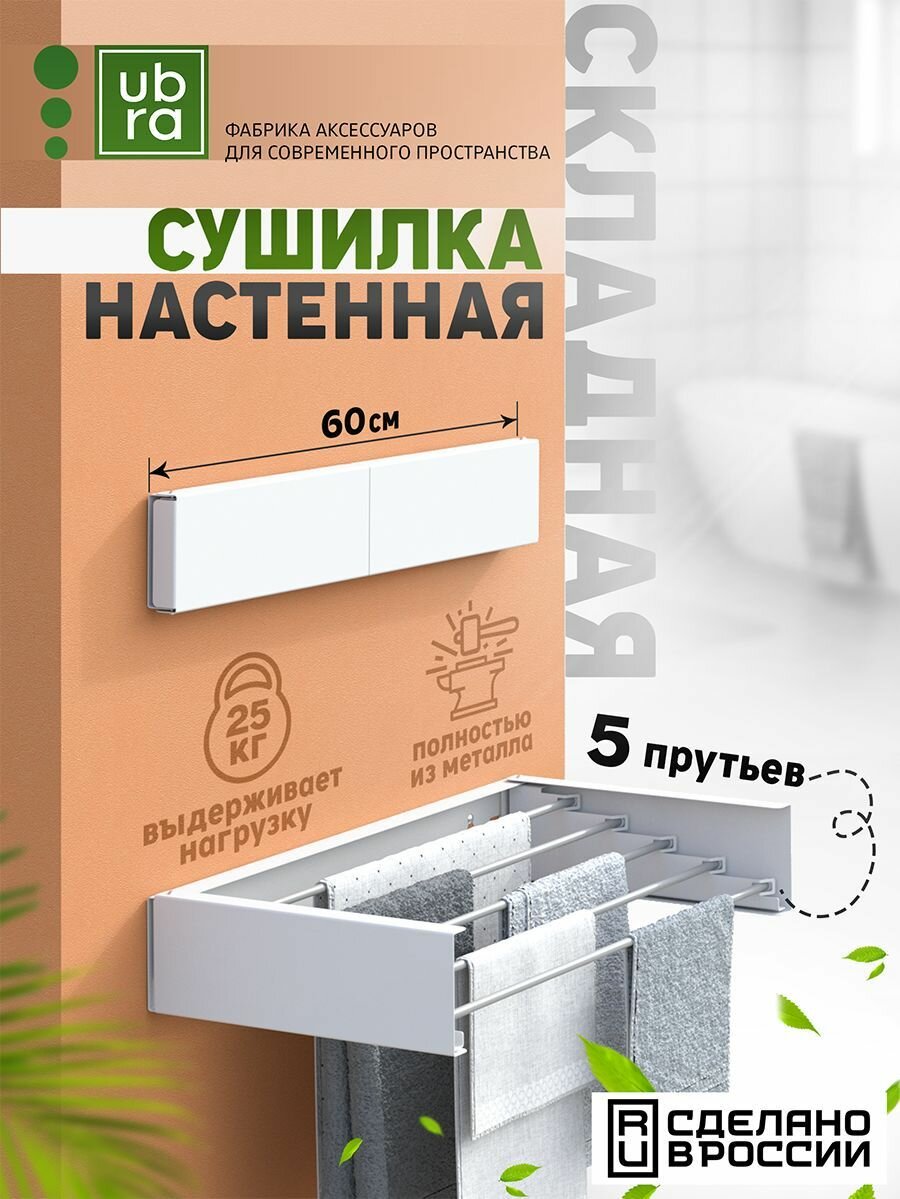 Сушилка для белья Ubra 60 белая, складная, настенное крепление интересное:
