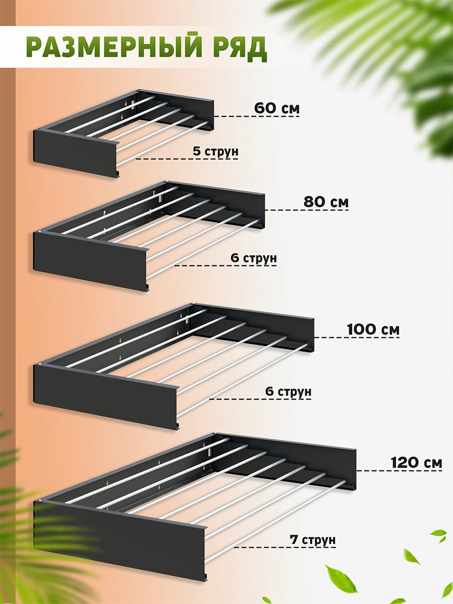 Сушилка для белья Ubra, складная, настенная, черная, 60 см интересное: