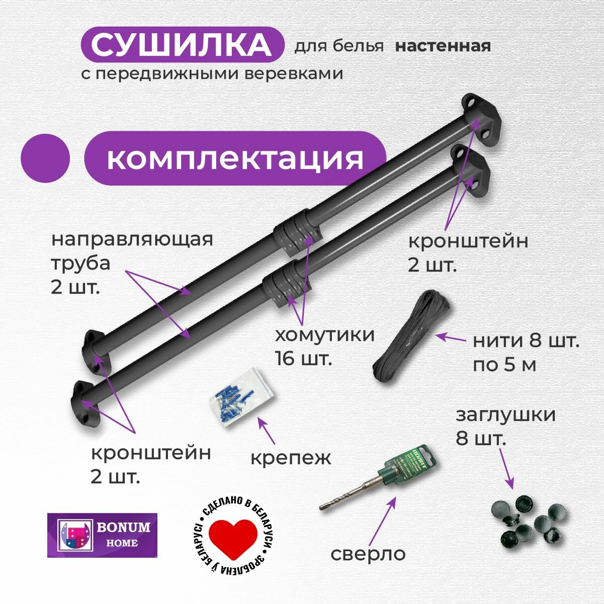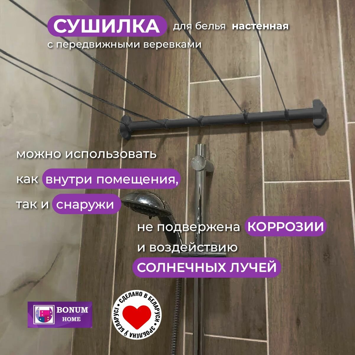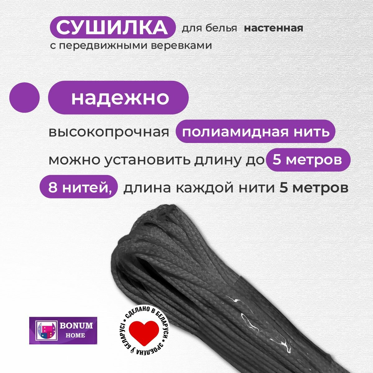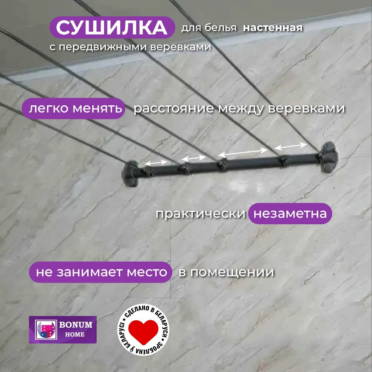 Сушилка настенная с 5 передвижными веревками, графитовая. Беларусь.
